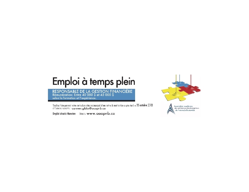 L’AAAPNB est à la recherche d’un.e Responsable de la gestion financière. Candidatures reçues jusqu’au 25 octobre. Détails : www.aaapnb.ca