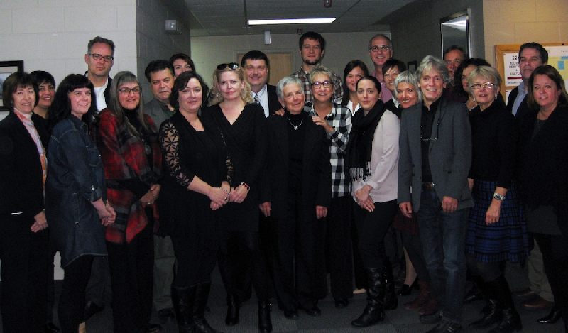 De gauche à droite: Darlene Whitehouse-Sheehan, Akoulina Connell, Sarah Johnson Power, Chet Wesley, Vicky Lentz, Marc Poirier, Nathalie Dubois, Heather McTiernan, Phyllis Grant, le Ministre Fraser, Kathryn Hamer-Edwards, Sebastien Michaud, Carmen Gibbs, Brigitte Donald, Jackie Duguay, Michel Desjardins, Suzanne Bernard, Nancy Juneau, Phillippe Beaulieu, Marcel Lavoie, Monique Drapeau Miles, Caroline Walker, Thierry Arseneau et Angela Francoeur.