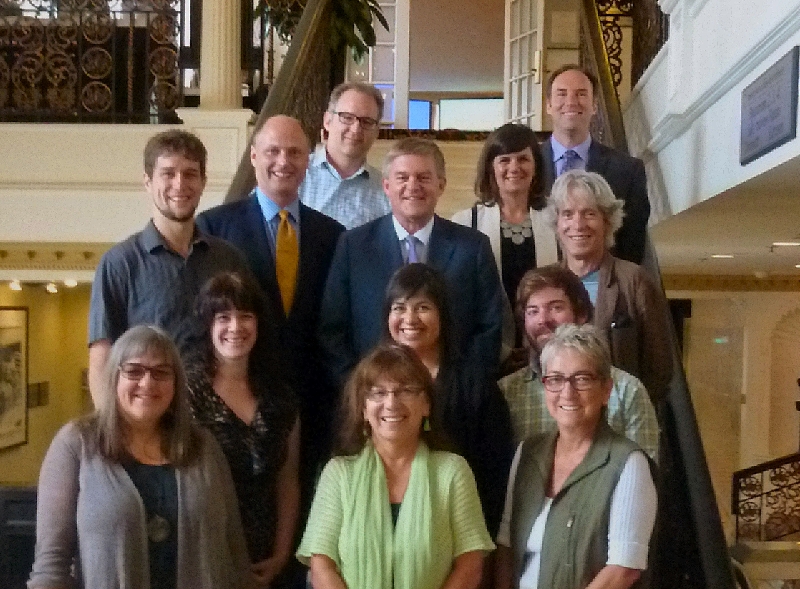 Dans l’ordre habituel, première rangée : Vicky Lentz; Imelda Perley et Carmen Gibbs. Deuxième rangée : Sarah Johnson Power; Akoulina Connell; et Gilles Doiron. Troisième rangée : Sébastien Michaud; le ministre Tourisme, Patrimoine et Culture, Trevor Holder; le premier ministre, David Alward; et Phillipe Beaulieu. Quatrième rangée: Chet Wesley; Kate Wallace; et Greg Lutes, sous-ministre Tourisme, Patrimoine et Culture.