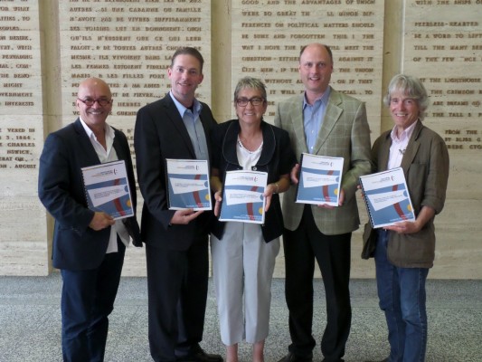 Le rapport de la Table de concertation des ressources humaines en culture a été remis aux ministres Jody Carr (Enseignement postsecondaire, Formation et Travail) et Trevor Holder (Tourisme, Patrimoine et Culture) le 3 juillet 2014.